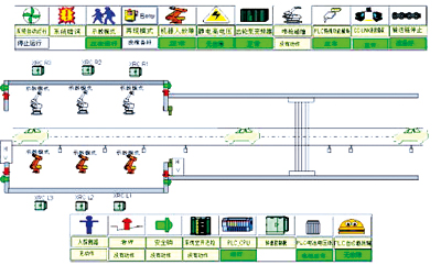 中央控制部分采用PC机作为上位机,采用组态软件制作人机界面,能够实时监控生产线各部分的信息,并对不同车型、不同颜色分别累计产量,便于生产管理。系统能够创建和保存喷涂参数表,以便自动识别车型,并根据输入的喷涂颜色及流量自动完成换色和喷涂作业。