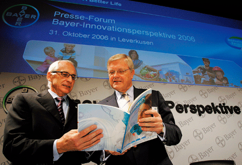在名为“拜耳创新观点”的论坛发布会上,拜耳集团董事会主席沃纳 温宁先生和董事会成员,负责研究的Wolfgang Plischke博士,展示了新版本拜耳科技杂志的研究成果