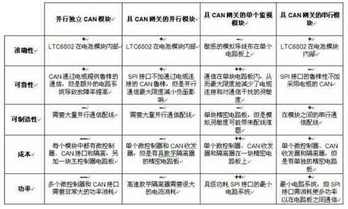 电池组监视系统的一个重要考虑因素是通信接口。就PC板内的通信而言,常用的选项包括串行外设接口(SPI)总线、I2C总线,每种总线的通信开销都很低,适用于低干扰环境。另一个选项是控制器局域网(CAN)总线,这种总线在汽车应用中被广泛使用。CAN总线非常鲁棒,具有误差检测和故障容限特性,但是它的通信开销很大,材料成本也很高。尽管从电池系统到汽车主CAN总线的连接是值得要的,但在电池组内采用SPI或I2C通信是有优势的。