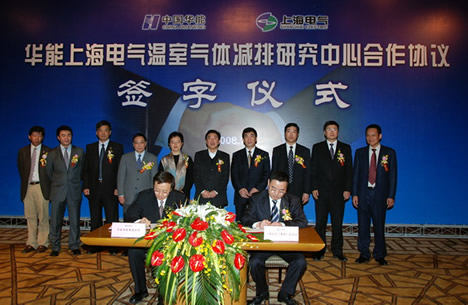 按照协议,上海电气与华能集团合作设立华能上海电气温室气体减排研究中心。该中心将根据国家节能减排要求,研究温室气体减排和能源高效利用技术,进行节能减排领域高新技术的开发、转化和推广应用。研究中心将以华能上海石洞口二厂2台60万千瓦燃煤机组项目为试点,进行燃煤机组二氧化碳减排技术的研究和应用。