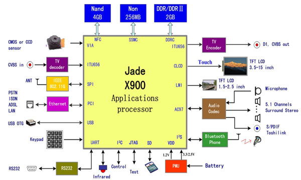 为使消费者能自由地选择资讯、享受娱乐,并不是单独地播放视频图像,上海杰得微电子公司开发出了X900应用处理器,并借助其在视音频实时处理方面积累的经验和硬件编解码设计技术。