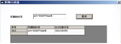 (1)查询:输入“车辆物料号”信息,点击“查询”按钮,可以查询到系统设置的该配置所对应的ECU代码信息,确认系统设置是否正确。