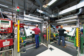 相比之下,SafetyEYE的安全监控范围可达120m2,所以两个工位总共只需要1个SafetyEYE就可以覆盖整个工作区域。在价格方面,SafetyEYE的性价比相对安全光幕和安全扫描仪所组成的系统要高。在技术方面,SafetyEYE采用了三维照相技术,所以可以对其下方区域进行立体的监控,这是安全光幕或者安全扫描仪所不能达到的。用户可以通过PC机灵活地把SafetyEYE所监控的区域划分成多个独立的监控区域,这样可以为用户以后的设备改造等提供便利。此外,通过以太网连接,SafetyEYE可以将现场的实时图像传递到PC机上,这样,在主控室内便可以进行生产工况的实时监控,而且SafetyEYE还具有拍照功能。在安装调试方面,只需将SafetyEYE固定在机器的上方并稍做调整即可投入使用。