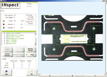 dalsa IPD视觉应用系统的iNspect和Sherlock软件提供了一整套的检测工具,并带有支持工具,可以与之集成为一套完整的工业应用解决方案。内置的连接到PLC和工艺控制计算机的界面可以控制生产流程;可编程的光源支持多相机界面,可以迅速地进行更换。另外,标准的网络硬件平台可以用来将检测数据和整个工厂范围内的工艺操作控制集成到一起。