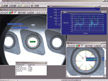这个工具可以检测到在扫描方向上由光照强度产生的、经标定后的变化度,可使大多数的计算和测量任务变得非常简单。数据采集软件可以采集到数十个甚至上百个点的数据,然后将这些点连接成直线、圆圈或其他几何图形,这一功用在复杂的汽车生产中极大地提高了测量的准确性和可重复性。此外,具有较强通用性的工具还可以解决正确的定位或角度开口方向、直径、切痕、鼓包、弯曲或非对准物件等。