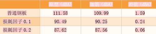 原峰值频率点的辐射效率明显增大,说明结构刚度的提高导致辐射效率增大。