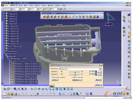 汽车零部件虽然没有整车那样复杂,但使用CATIA V5中的DMU功能同样帮助工程师快速解决零部件设计中最为关键的空间尺寸,运动干涉等问题,无疑可以减少产品的开发成本,提高开发效率。