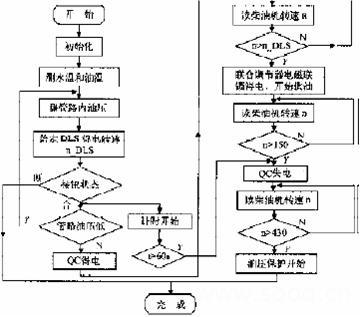 从前面的分析中可以得知,在进行起动过程控制时,主要是对柴油机转速的检测、机油管路内油压的检测、油水温度的检测。采用PCC 进 行快速运算及判断,确定点火转速,对起动接触器、调速器内DLS线圈等进行实时控制。