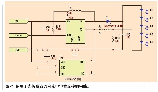 这些要求如何在一个实际的应用中实现呢?让我们看一看环境光传感器是如何在一个自动的白光LED背光控制电路中工作的,在汽车背光应用中通常可以看到这种控制电路。