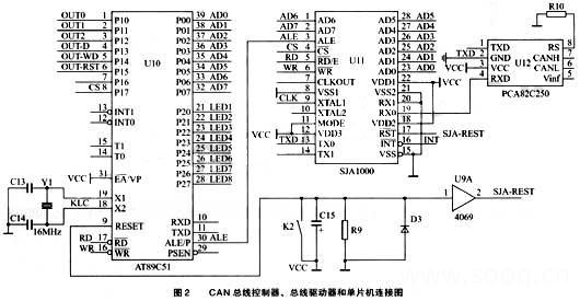 CAN总线控制器、总线驱动器和单片机连接基本方法如图2所示。