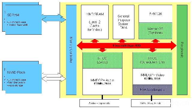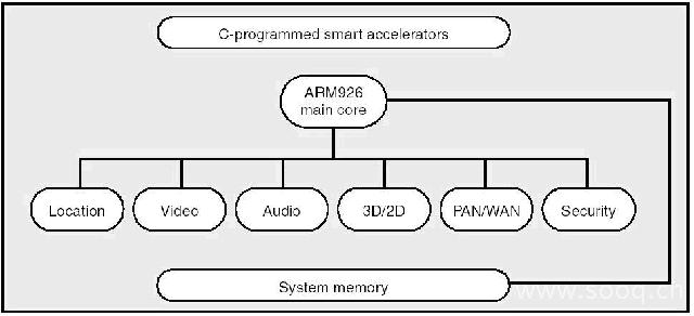 图三 具广泛功能延伸性的多核心应用处理器架构(以Nomadik STn8810为例)