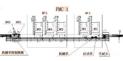 每个FMC中都由几道工序组成,每道工序分别由多台相同型号的加工中心组成。每个FMC前面是上料辊道,后面是下料辊道及检测站。各个FMC之间也是相应的辊道,可以起到工件暂存作用。