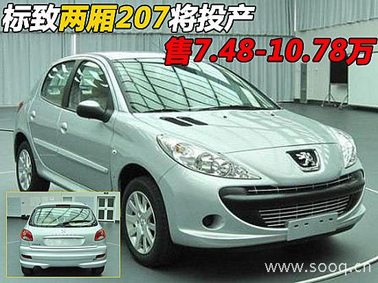 东风标致于2008年11月7日正式推出了全新三厢A0级轿车标致207,售价7.48—10.78万元。东风标致透露,东风标致两厢207将会在09年第一季度正式推出。与此同时我们从北京地区东风标致4S内部人士处获悉到,两厢标致207的售价将会与三厢车型售价大致相同。两厢标致207的车型尺寸为3900×1680×1468mm,比标致206稍大。而轴距方面,两厢207的轴距为2450mm,仅比206长了7mm,因此在内部空间上变化不大。