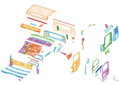 图3所示为某型车身整体数模的爆炸视图,该图不仅直观的表明了各个零件的产品细节,还表明了其装配位置关系。