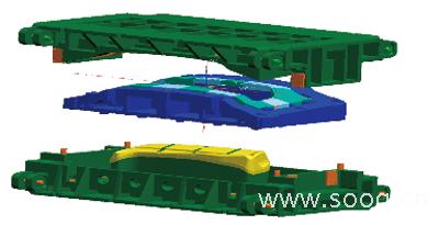 在工艺方案评审通过后,即可进行模具设计及模具制造等工作。现在的模具设计过程也已经采用三维实体设计形式(见图9),在现有条件下,大型覆盖件产品模具的制造主要依靠高速、高精度的数控加工设备完成,加工效率和加工精度得到了大大的提高。