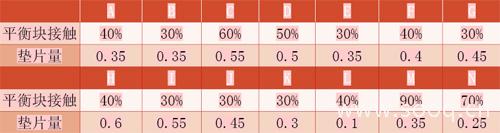 通过对圆形平衡块接触面积调查,得到如表3所示数据。从表3可以看出,平衡块接触面积均在30%以上,符合规定要求。