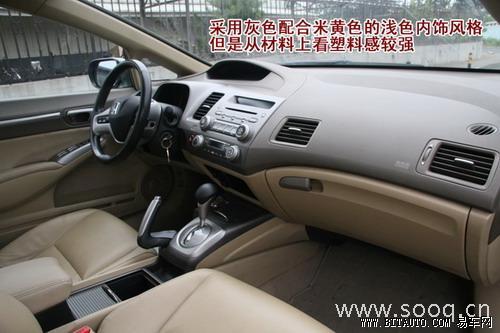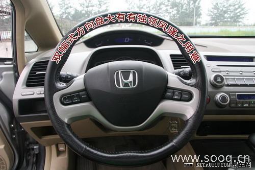内饰方面并不是思域的强项,虽然采用了常亮式蓝色背光仪表盘,显得时尚感十足,但是当你看到思域的内饰材料时你会感觉到思域的内饰材料塑料感强烈,即便做工还算较为细致,也弥补不了材料带来的失望感,况且这样一款运动气息强烈的车型采用的是浅色内饰,而并没有采用黑色内饰,让人有些无法理解。但独具特色的双幅式方向盘,在如今盛行的三幅和四幅式方向盘中有独领风骚之用意。