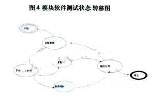 车速表的测试需要预先了解设定目标车型的特征参数,如车辆特征系数、车速传感器的传感系数等,然后通过数据通信卡(cAN总线信号)将特征参数下载到被测仪表,按照测试要求产生脉冲信号,信号的幅值、频率可以通过手动/自动进行调整,车速信号具备超速报警提示功能,根据设定的超速门限值,高于该门限值时,通过主界面前面板上的超速报警灯闪烁提示。测试过程也可以手动/自动进行,测试结果存档以备查询。软件测试状态转移图见图4。