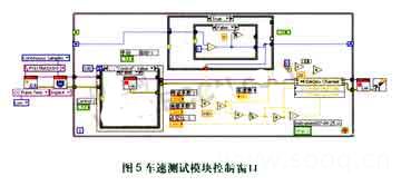 仪表测试系统软件采用N I公司的LabVIEW 8.20平台进行设计,本系统采用LabVIEW的图形化程序语言,以一种很直观的方法建立前面板人机界面和程序框图。前面板是用户可见的,类似传统仪器的操作面板,利用工具模板从控制模板中添加输入控制器和输出指示器,控制器和指示器种类可选择。程序框图是支持虚拟仪器实现其功能的核心,对程序框图的设计涉及节点、数据端口和连线的设计。连线代表数据走向,节点则是函数、Ⅵ子程序、结构或代码接口。本测试系统考虑到仪表整体功能测试和模块功能测试的需要,整个系统主要包括界面模块和各个功能测试模块,根据信号类型将仪表功能测试分为:车速表测试模块、发动机转速表测试模块、燃油表测试模块、水温表测试模块、开关量测试模块、CAN通信测试模块以及参数设置模块等主要功能模块。汽车仪表测试系统的软件总体功能框图如图2所示。