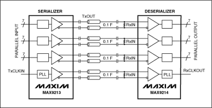 第二代LVDS数据传输器件主要为大屏幕应用设计。汽车内部各种摄像机的连接并不需要很高的传输速度,针对这种应用,Maxim的第三代LVDS器件采用低时钟速率,并减少了并行数据总线的宽度。