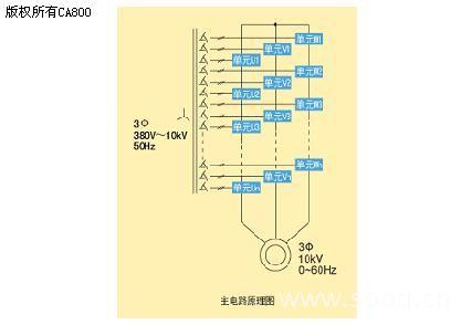 1、微能公司高压大功率变频器采用多个功率单元构成多重化串联叠波输出的拓扑结构,每个单元输出固定的低压电平,再由多个单元串连叠加为所需的高压,详见下图所示: