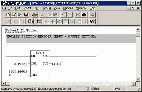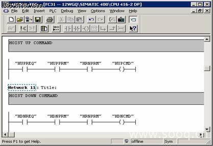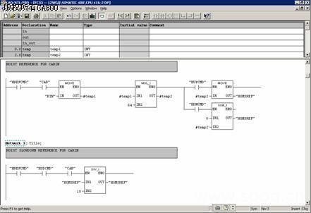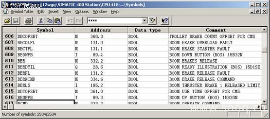 l整个程序的变量名采用缩写,通俗易懂,加上变量附带的注释,方便了码头工程人员对程序的掌握,而且工程人员很容易记住一些常用的变量名,如起升上升允许的变量命是HUPPRM是HOIST UP PERMIT的缩写,在熟悉了变量名后,可利用PLC软件SIMATIC MANAGER自带的查找功能(GO TO LOCATION),很快找到该变量对应的程序行,进一步缩短查找时间。