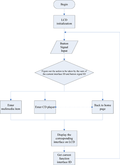 本设计中的软件部分占用了8K的FLASH容量,通过一个主循环查询按键的输入,再结合当前的界面组合出一种任务。软件流程图: