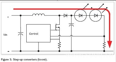 若电源电压低于全部串接LED前向电压之和,则要选用升压恒流器。因升压恒流器除了要控制电流外,还要控制升高了的电压,所以,此类恒流器更复杂。