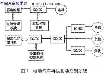 电动汽车再生制动控制系统可以节约能源、提高续驶里程,具有显著的经济价值和社会效益。再生制动还可以减少刹车片的磨损,降低车辆故障率及使用成本。图1所示为XJTUEV 1电动汽车再生制动控制系统的结构图。该系统由超级电容或飞轮及其控制器组成,利用超级电容或飞轮吸收再生制动能量,具有非常突出的优点。当车辆制动时,电机工作于发电机工况,将一部分动能或重力势能转化为电能储存在超级电容或飞轮中,由于超级电容或飞轮的功率密度大,可以更快速、高效地吸收电机回馈能量。在车辆起动和加速时,利用双向DC/DC将存储的能量释放出来,协助电池向电机供电,不但增加了电动汽车一次充电的行驶里程,而且避免了蓄电池的大电流放电,达到了节约能源、降低刹车片磨损和提高蓄电池寿命的目的。