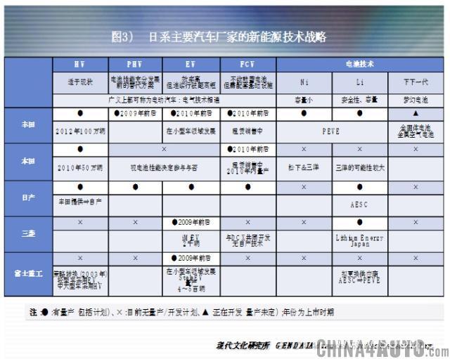 在混合动力(HV)方面,面对丰田的示范性业绩,通用(GM)、福特(Ford)、戴姆勒(Daimler)、大众(VW)、宝马(BMW)公司等主要汽车厂家不约而同地都进行了战略调整,于2005年之后纷纷发布了引入混合动力汽车的发展计划。