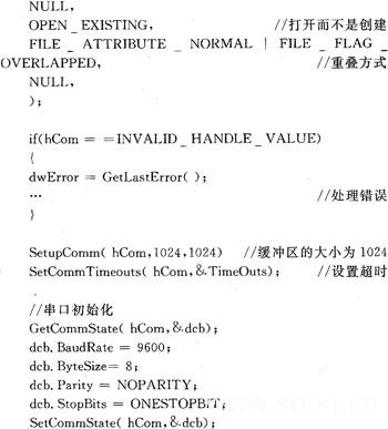 在Windows 98中将串行口和文件的操作统一起来。对他们打开、读、写、关闭等操作都使用相同的API函数,但是又是有区别的,比如串行口不能像文件一样被删除,这些差别体现在API函数中部分的参数设置上。