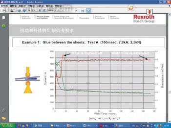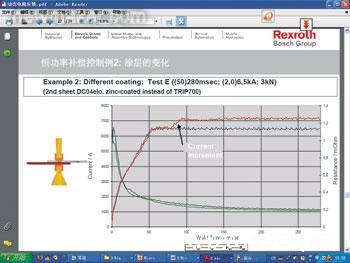 通过一段时间的现场验证,中频焊机焊接A5侧围门槛处四层板焊点焊接质量合格,且质量稳定,显著优于工频焊机的焊接质量。如此优良的焊接质量不仅与中频焊机的直流极性有关,还与它的控制系统有重要的关系。RexrothPSQ6000中频焊机拥有功能强大的监控软件,智能化程度高。它采用了恒功率控制技术和伺服运动控制器(气动元件),可以对焊接电流、焊接时间、焊接功率及焊接的压力等进行全闭环控制。