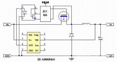 这是一种常用的方法,如图三所示,优点是电路比较成熟,但光耦次级需要隔离电源,由于光耦的速度不是很快,工作频率不能太高,并可能降低电源的瞬态响应速度。