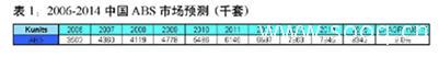 前言 随着经济的不断发展,人们对汽车的需求正日益加强,与之相应,汽车的消费群体也变得越来越成熟,主要表现在消费者除了关注汽车的外型外还越来越重视汽车的内在品质,其中,汽车的安全特性逐渐成为用户考虑的首要选购条件。由此,作为主要的安全系统之一的汽车防抱死制动系统(ABS)正引起越来越多的关注。下表(表1)是世界著名咨询公司Strategy Analytics对中国ABS市场的预测,从中我们可以明显地看出这种不断增长的趋势,预计在2006-2015年期间中国的ABS市场的年复合增长率将达到9.0%。