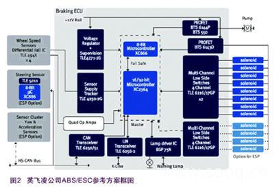 针对ABS/ESC的这些要求,作为一个能提供完整产品链的芯片供应商,英飞凌公司结合了与世界各主要ABS/ESC供应商几十年合作开发的成功经验推出了自己的参考解决方案。在下面的章节中,我们将对此进行详细的介绍。