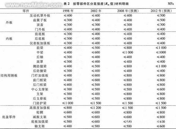 新材料采用的主要目的是提高综合性能。钢铁公司采用新材料须充分考虑成本。任何新材料的采用除必须满足汽车性能要求外,还必须考虑不断降低成本的因素。材料的成本包括制造成本和使用成本。材料制造成本低但制造工艺复杂,制造时需要高级设备的方法同样不能采用。日本汽车企业在计算成本时,一般不单纯按材料价格,而是综合工艺性能加材料成本来最终决定材料的使用。