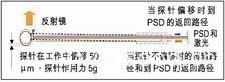 不同于传统的探针,传统探针必须越不易弯曲越好,而REVOTM探针则为弯曲设计,通常是在离探针端部约50微米处。这可偏转激光束的返回路径,光束将由同样安装在测头体内部的PSD(位置传感器)接收。