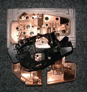 另外,在很多实际情况下,如:高档轿车其本身产量不多,所需零部件的加工就需要寻找一种灵活、经济的生产方式。直接金属粉末烧结金属模具就是一种很好的选择。高档梅赛德斯奔驰轿车内饰件的模具就是一个小批量生产的案例,图4中是使用Direct Metal烧结得到的模具,可以看出产品是有着较复杂的筋板结构的薄壁件,因此对产品的机械性能有着较高的要求。使用Direct Metal烧结系统,使整个周期包括模具设计在内到交货期缩短到了25天,并交付了50000件的合格产品。