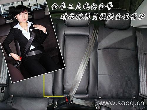 后排座椅全排均为三点式安全带,若要坐满3人,中间乘客的安全将更有保证。