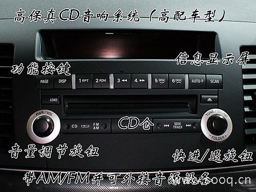 中控台上部为高保真CD播放机,闲暇时的音乐娱乐也全部由此而来。功能按键齐全操作简单,初次上手后很快便可轻松控制。CD播放器上部的显示屏显示时间以及车内外温度灯等信息,若需要更高档次享受还可直接连接其他音源设备(仅限高配车型)。