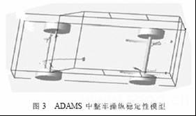 建立整车仿真模型常有多种方法,笔者应用机械系统运动学、动力学仿真分析软件ADAMS,来建立仿真模型,并对不同方向盘转角下的操纵稳定性进行了动力学仿真。