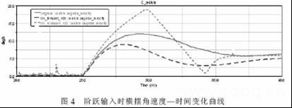汽车以42km/h的车速直线行驶,方向盘在中间位置时,突然给方向盘加一脉宽为0.5一个三角脉冲,转角分别为80°、160°、250°、320°输入。输入脉冲激励后,使方向盘恢复到中间位置。