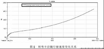 由图8可知,转弯半径随着汽车行驶速度的增加而增加。