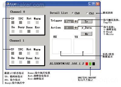 (1)Blident接口模块:用于连接上位系统。Blident采用工业以太网协议,与PLC和上位机同时通讯。