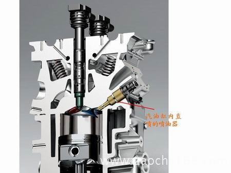 汽油缸内直喷(GDI):这一技术的最大特点是将通过高压油泵提高压力后的汽油,通过高压油轨和喷油器,将其直接喷入缸内,从而使缸内的汽油得到充分雾化,并和空气尽可能按照最优化的模式进行混合,提高了燃烧过程的可控性,并大大优化了整个燃烧和做功过程。它具有使发动机得到更高的充气效率、更精确的瞬态和过渡工况的供油控制、大大增强发动机的抗爆性和充分提高燃烧热效率等优点,使发动机在获得更高的动力性的同时拥有更好的燃油经济性。GDI技术一般可使发动机的功率达到同排量非直喷发动机的1.5~1.7倍,燃油效率提高20%以上。