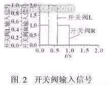 对差动式电液执行器,只要适当调整活塞杆直径d即可实现。对弹簧复位式电液执行器而言,则应通过调整复位弹簧刚度k来实现。为此,根据所建立的数学模型,给图1(a)与图1(a)中的开关阀输入图2所示的占空比控制信号,并设定如表1所示的参数进行仿真,得两种电液执行器的位移响应曲线分别如图3、图4所示。