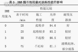 3 . 3 DBE 慢干剂用量对涂料性能的影响