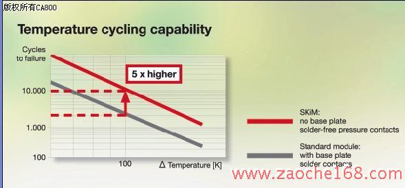图 4:SKiM的温度循环能力比标准模块高5倍
