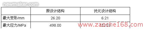 表 3 结构的最大应力和最大形变位移及约束反力的比较