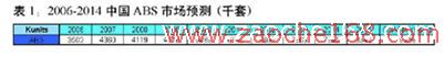 由此,作为主要的安全系统之一的汽车防抱死制动系统(ABS)正引起越来越多的关注。下表(表1)是世界著名咨询公司Strategy Analytics对中国ABS市场的预测,从中我们可以明显地看出这种不断增长的趋势,预计在2006-2015年期间中国的ABS市场的年复合增长率将达到9.0%。